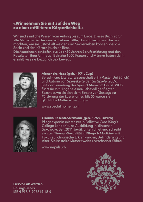 Menschen in der zweiten Lebenshälfte geschrieben, die sich inspirieren lassen möchten, wie sie lustvoll alt werden und Sex (er)leben können, der die Seele und den Körper jauchzen lässt.