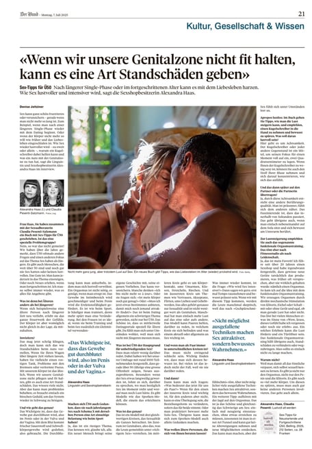 «Menschen lieben Erregung, Ekstase, Intensität, emotionales Verschmelzen, sich Fallenlassen und Ankommen dürfen. Sex ist ein Weg, all dies zu erleben und wir können uns zu jedem Zeitpunkt im Leben auf diesen Weg machen. Guter, erfüllender Sex kennt kein Alter.»
